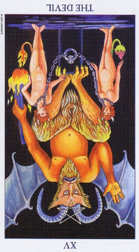 Today I pulled the devil reversed as the card of the day from my tarot card deck. Interesting! Like the death card, most people fear the devil card. Bottom line, and generally speaking, the devil card can symbolize sexual obsession,Illushionment, misery, and materialism. However, the devil card reversed can indicate a person who becomes conscious of being dissatisfied with the unhappy status of their life. As a result, they make a conscious decision to try an liberate themselves by making changes for the better. However, just like a drug addiction, it may very easy to return to the old way of doing things which caused the unhappiness to begin with.
